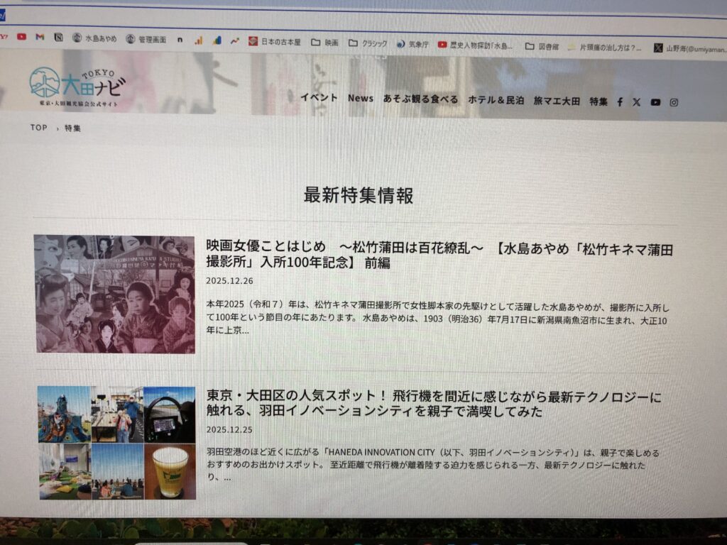 2025年12月26日、東京・大田観光協会公式サイト〈大田ナビ〉にて、「水島あやめ『松竹キネマ蒲田撮影所』入所100年記念」企画がアップされました。